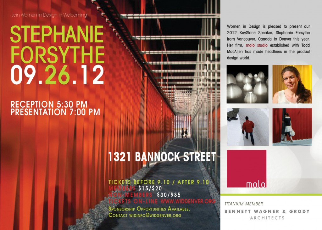 Please join Women in Design for our fourth annual international speaker, Stephanie Forsythe, from molo studios in Vancouver, Canada.